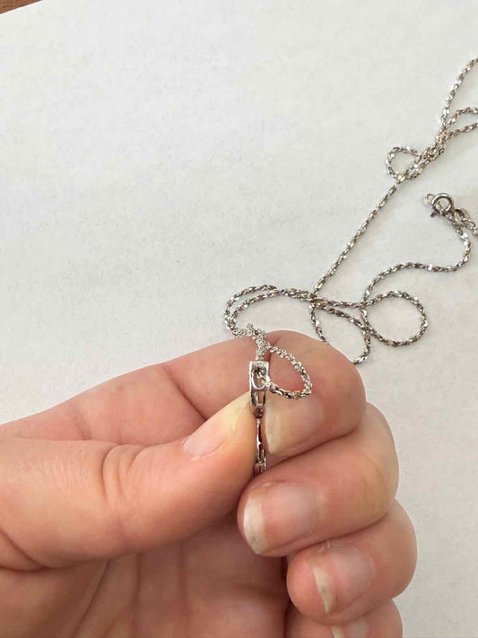 18k White Gold Marquis Link Pendant And Sterling Silver Chain Necklace