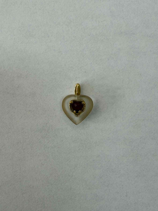 18k Yellow Gold Garnet Heart Pendant With Diamond Accent