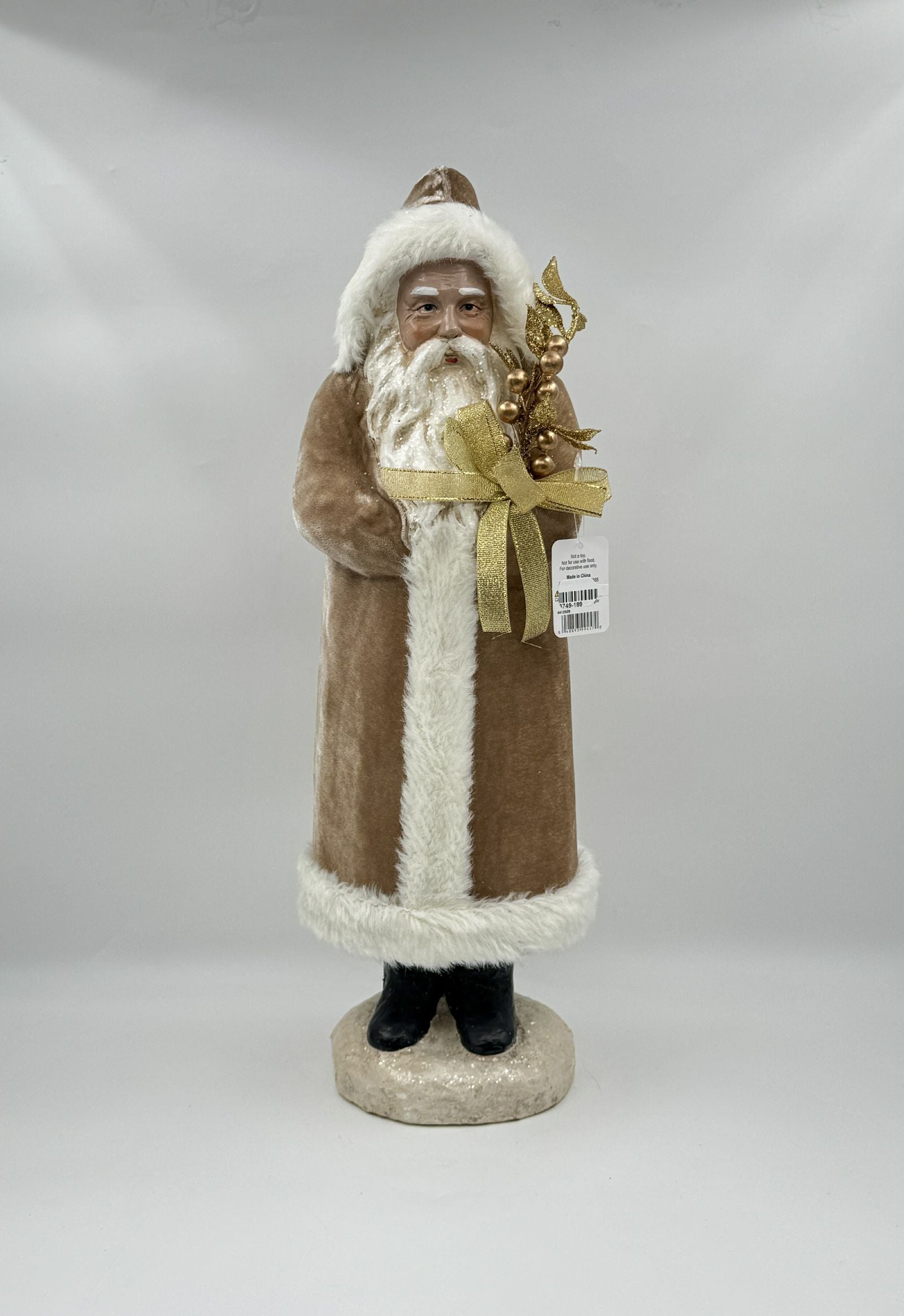 17.25" Champagne Velvet Santa – Raz Imports Figurine