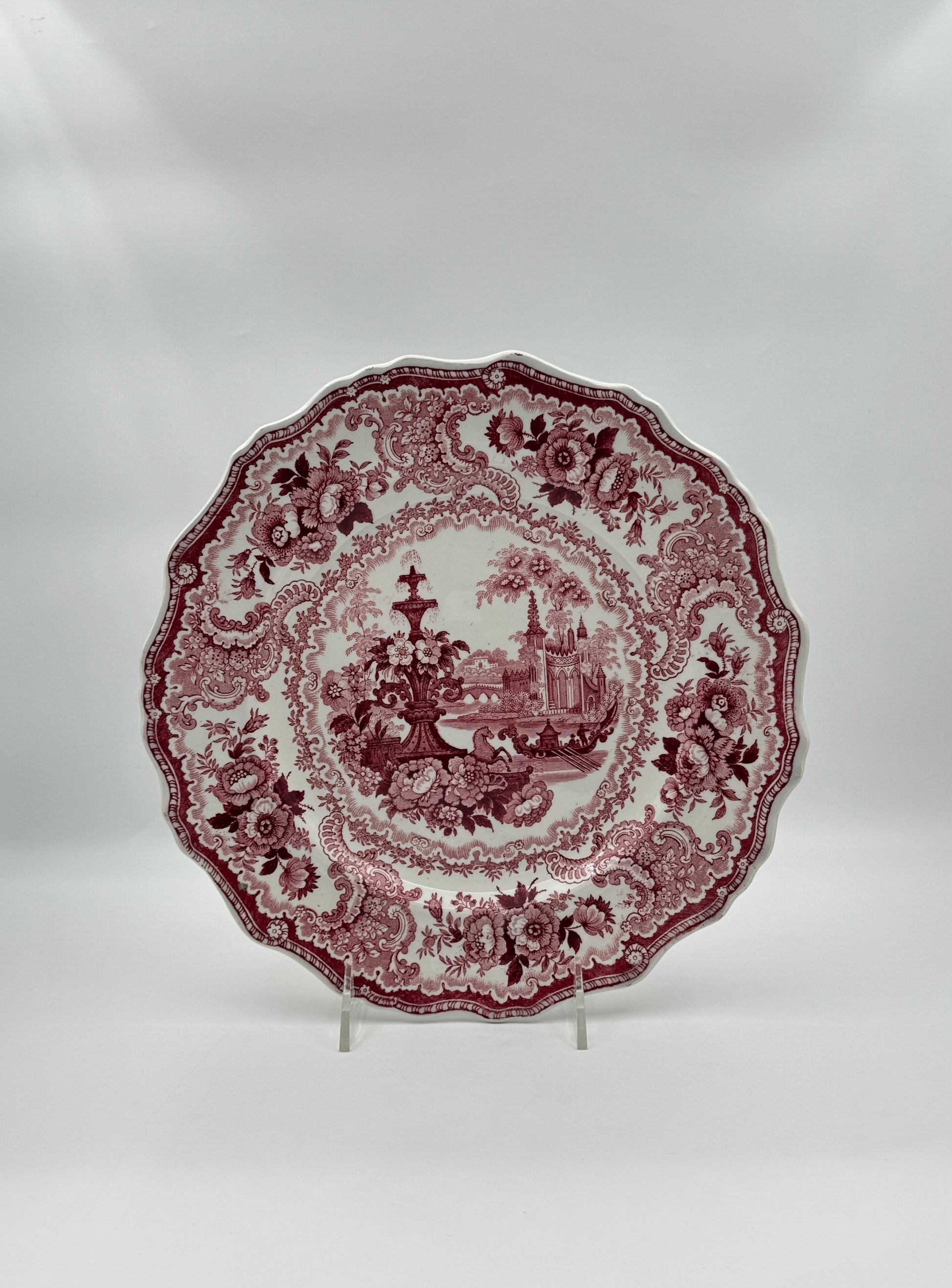Adams Red Transferware Plate – "Fountain Scenery" England, c.1850