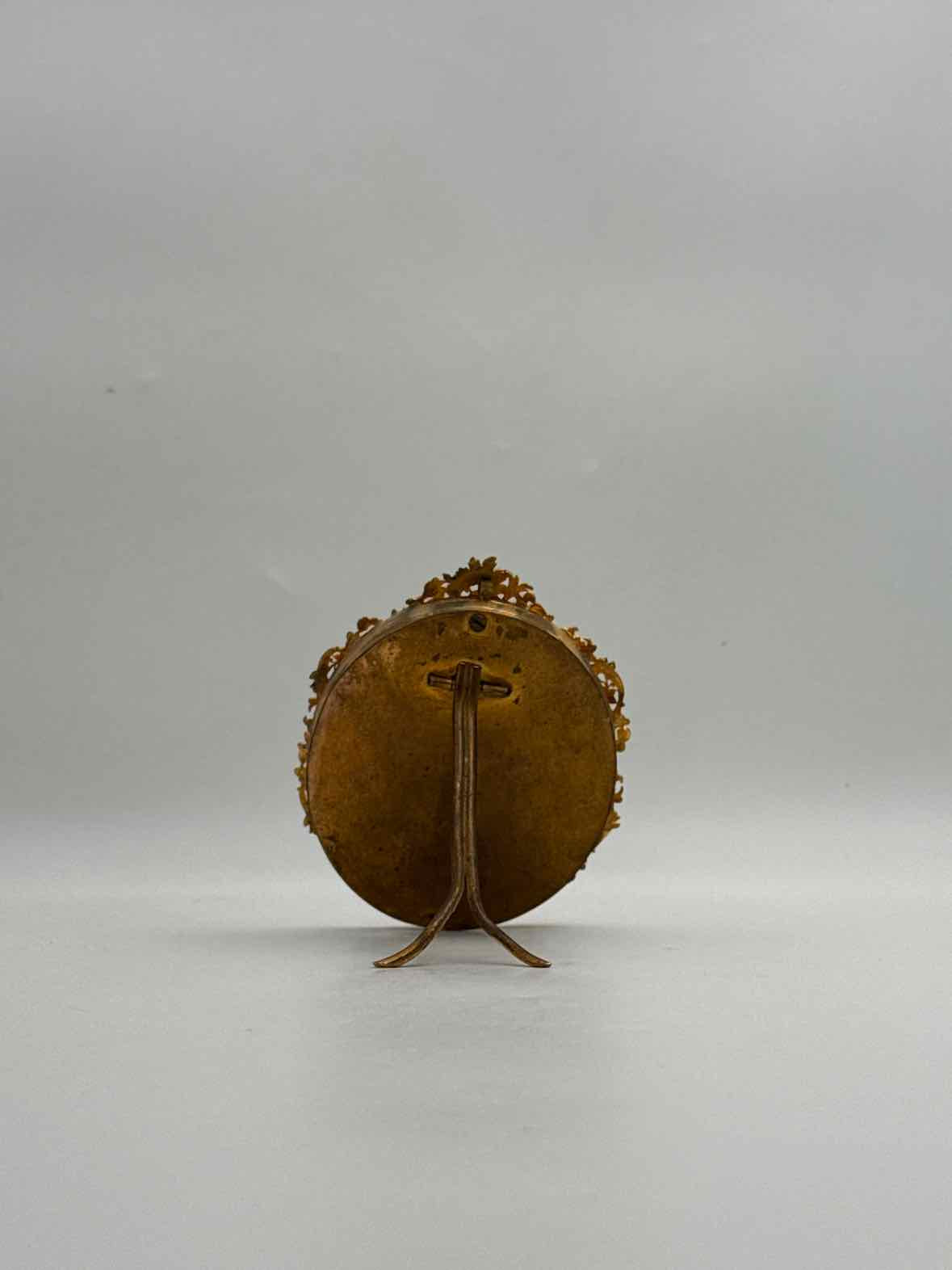 Portrait miniature on porcelain in standing enameled Gilt Bronze Frame "Giovane Donna or Young Girl" Italy c. 1890, measures 3.25" x 4", pre-owned in good condition
