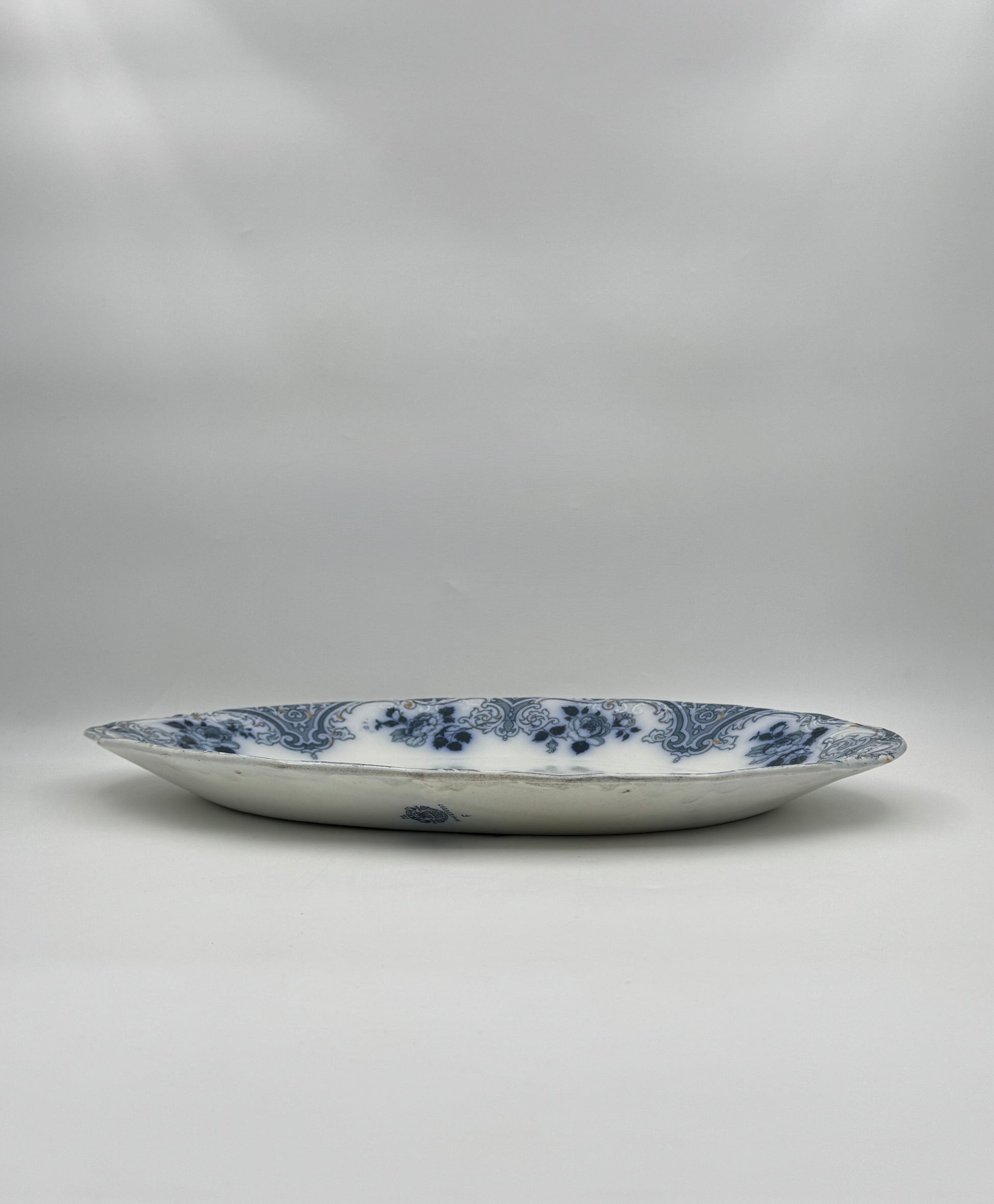 Antique English Ironstone Platter – “Albion” Blue & White Floral Scroll Design
