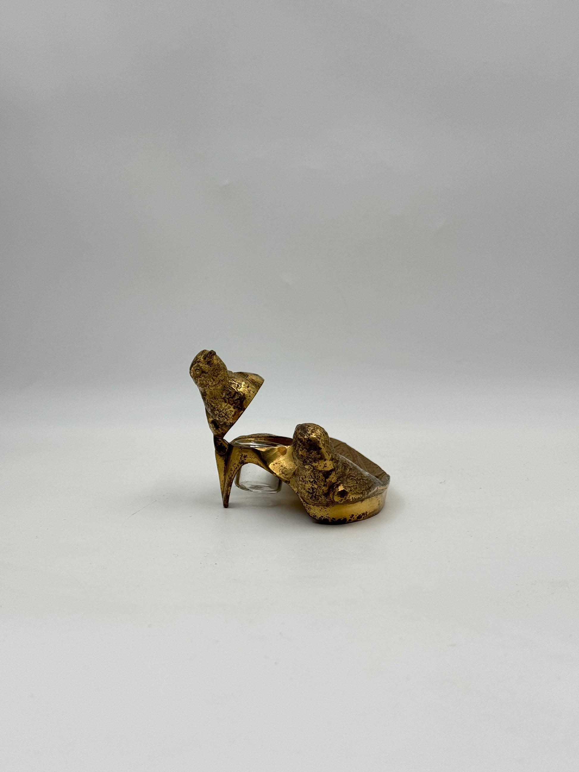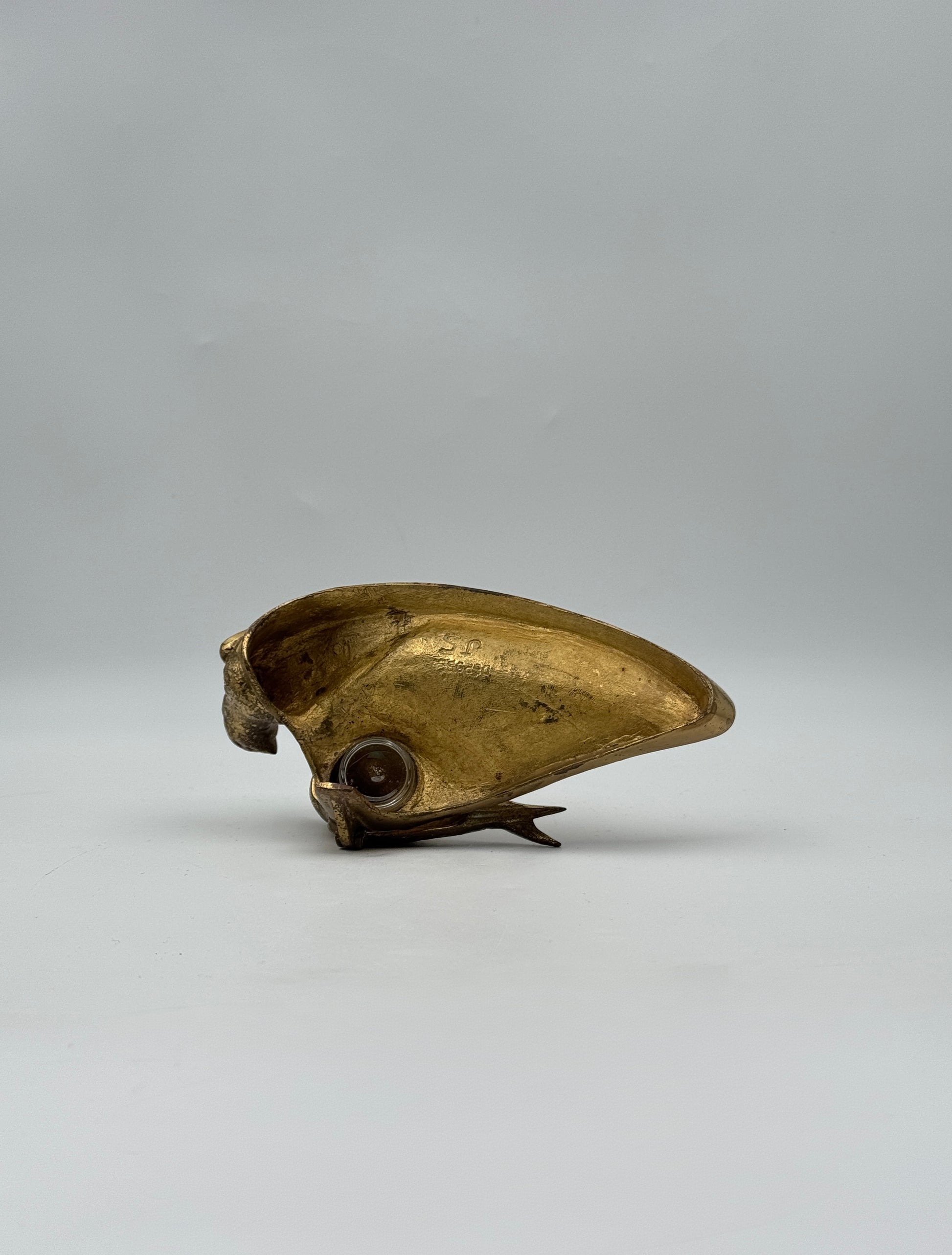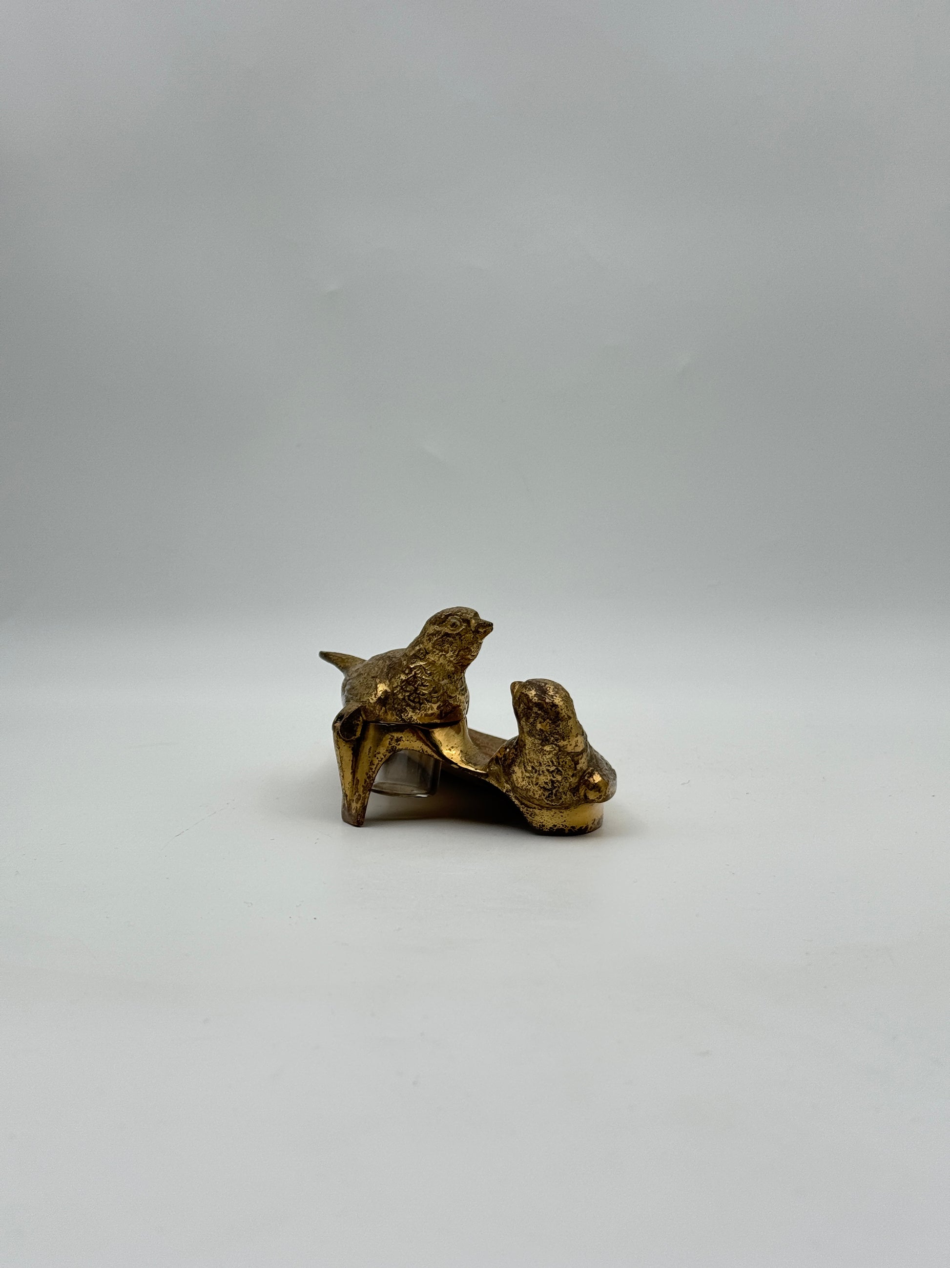 Antique French Art Nouveau Gilt Bronze Inkwell – Pair of Birds on Leaf Base, c.1920s