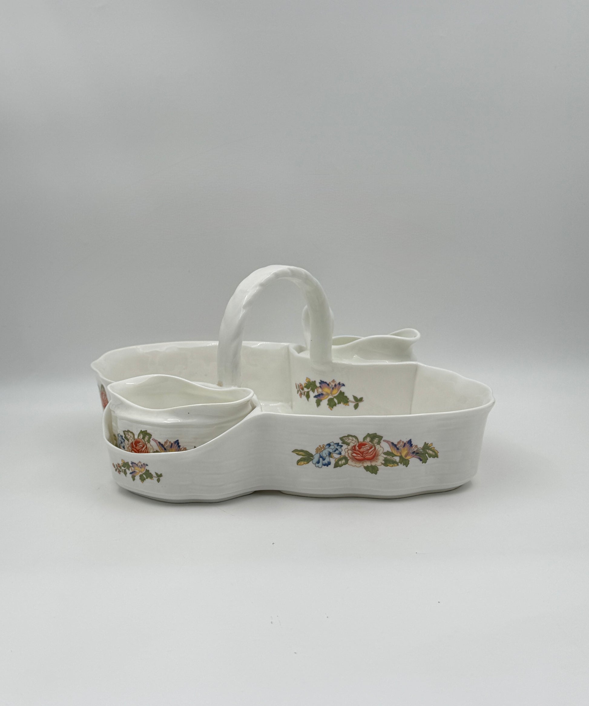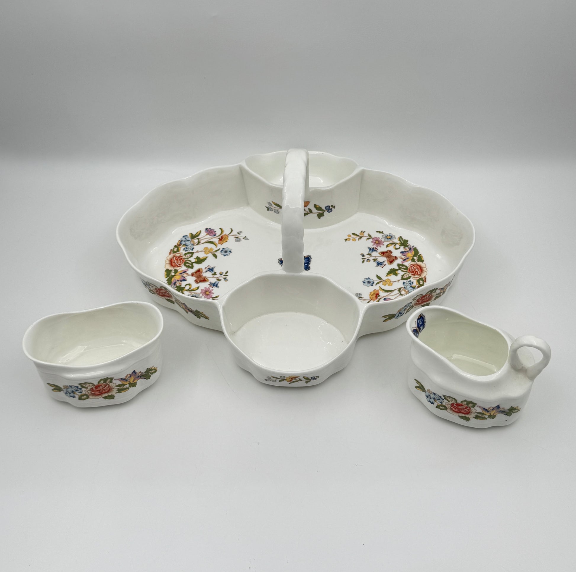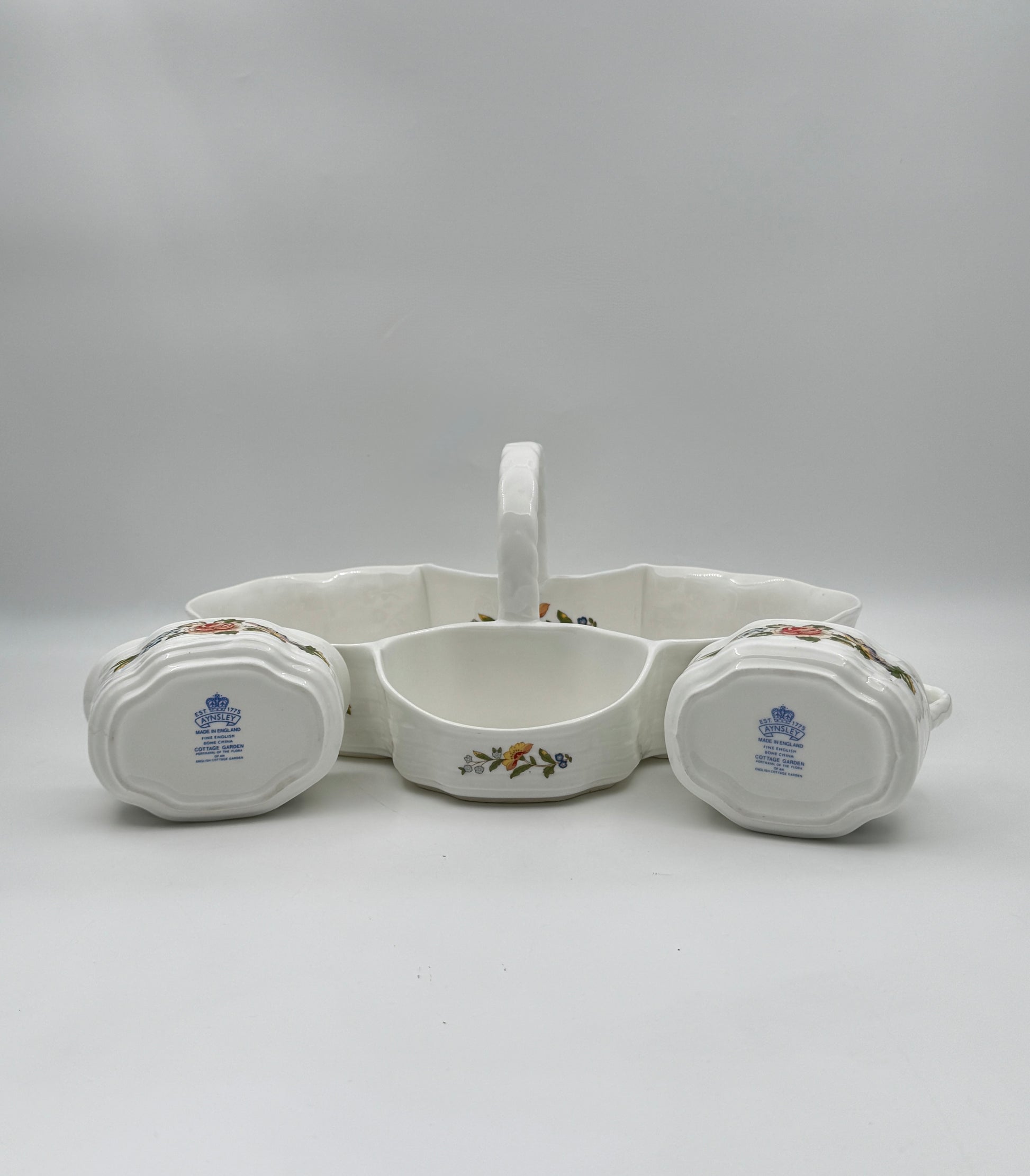 Aynsley "Cottage Garden" Strawberry Basket with Cream and Sugar – Bone China, England