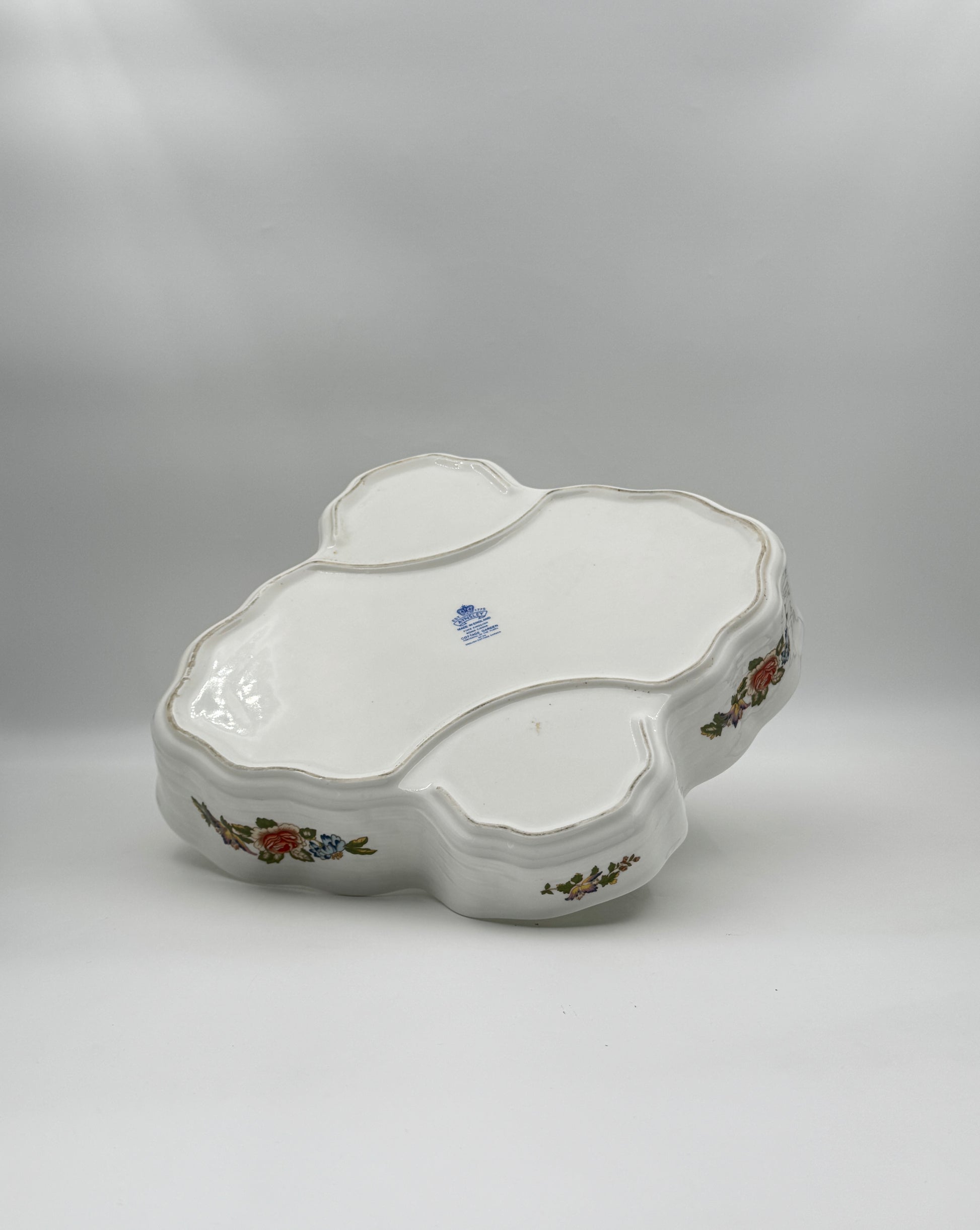 Charming Aynsley “Cottage Garden” strawberry basket set complete with cream and sugar. Made of fine English bone china, decorated with multicolor floral sprays and a central handle.