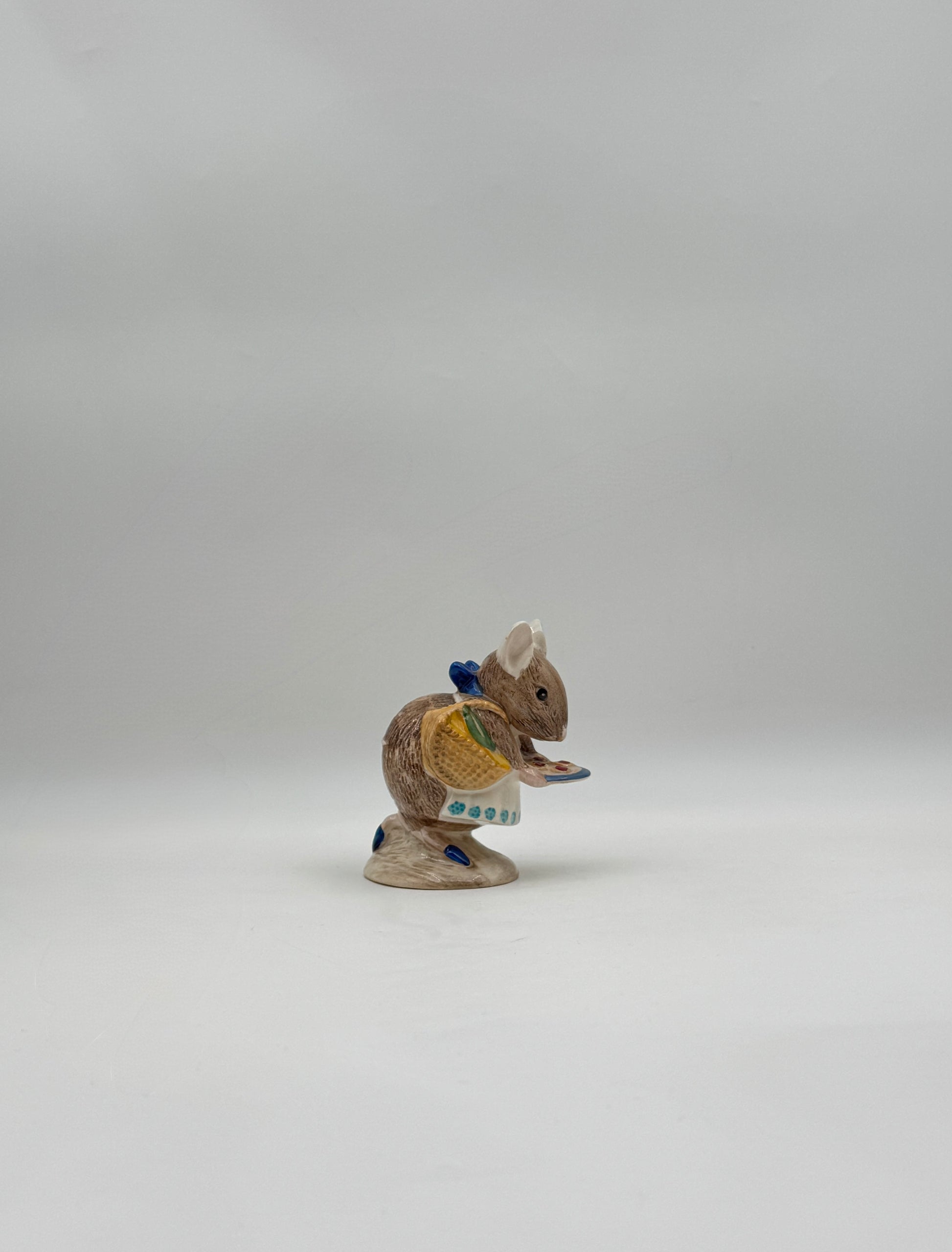 A sweet porcelain figure of Appley Dapply, shown carrying his basket with charming Beatrix Potter detail and gentle storybook character.