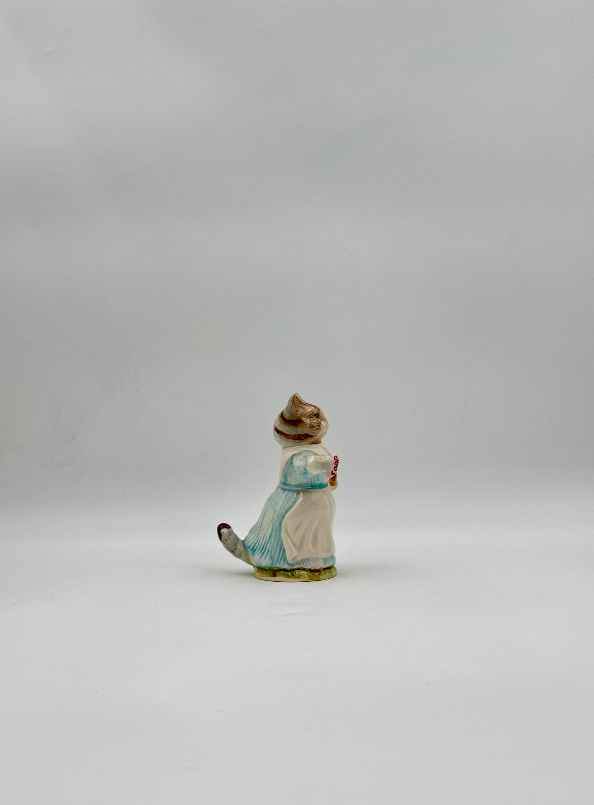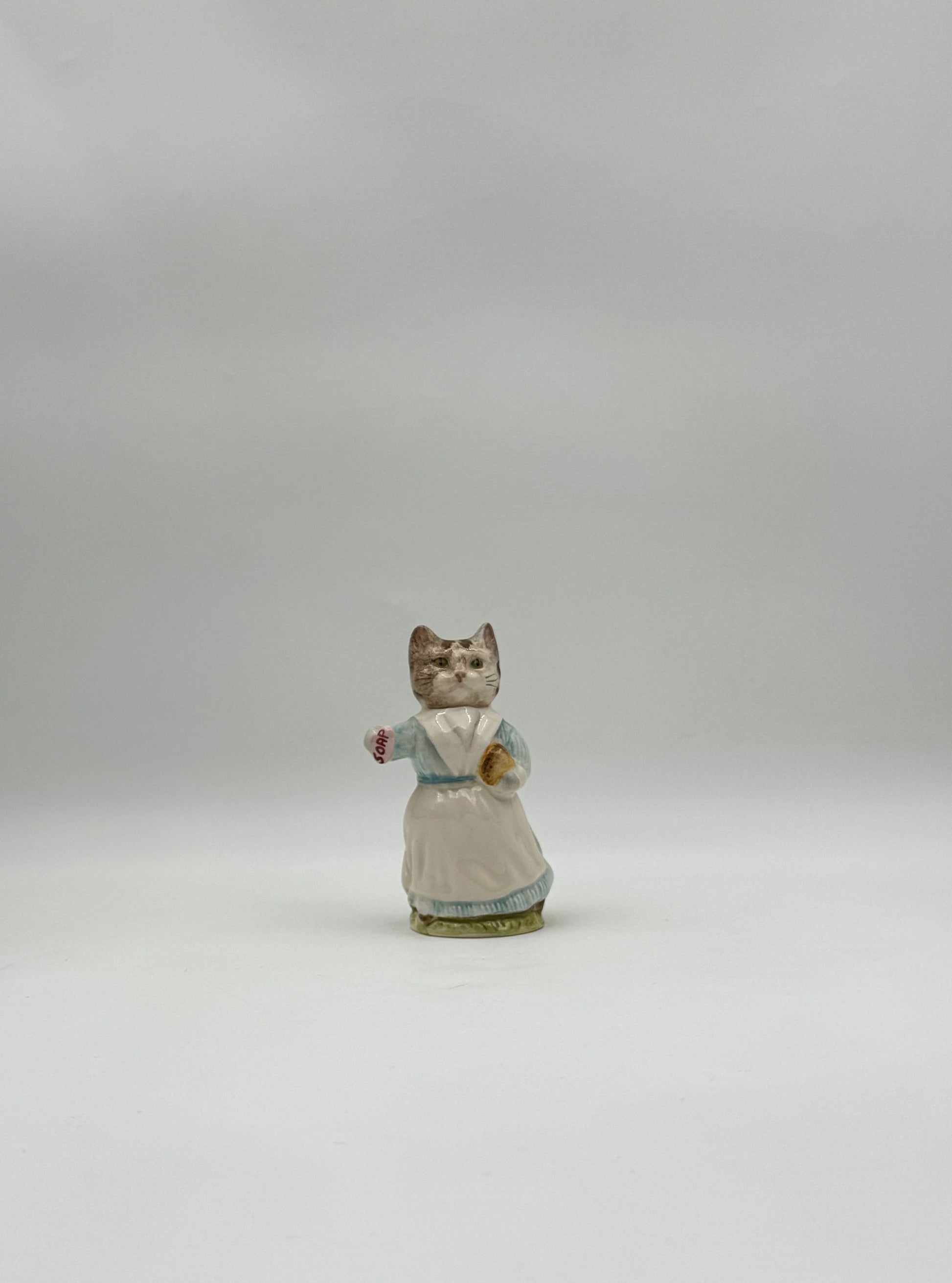 A charming porcelain figure of Tabitha Twitchit holding her soap and sponge, full of gentle character and storybook appeal.