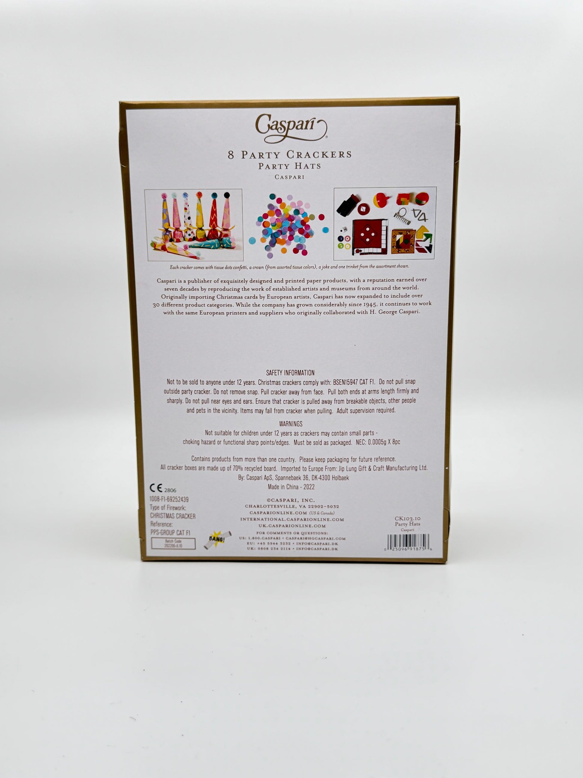 Caspari Party Hat Birthday Crackers – Set of 8