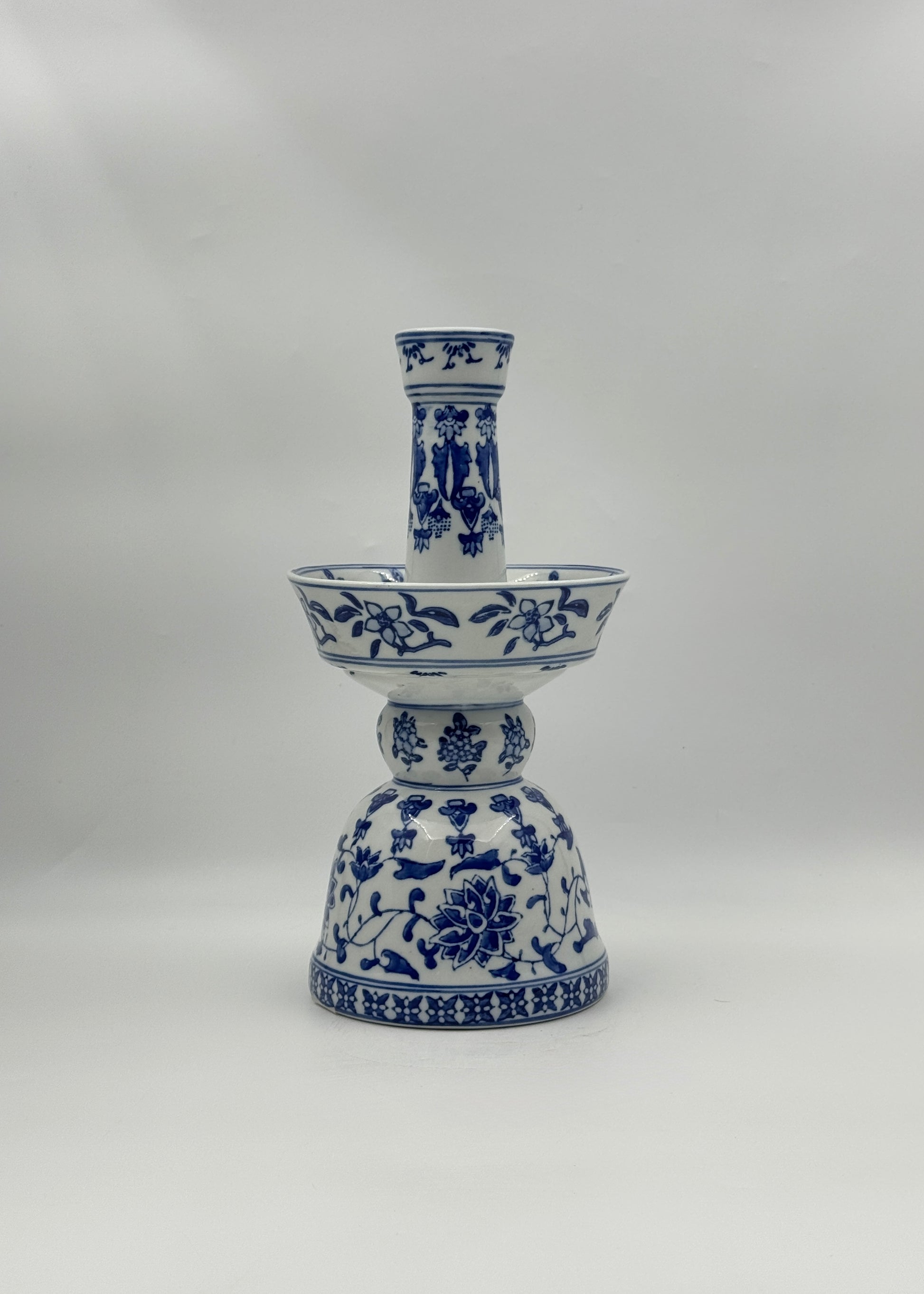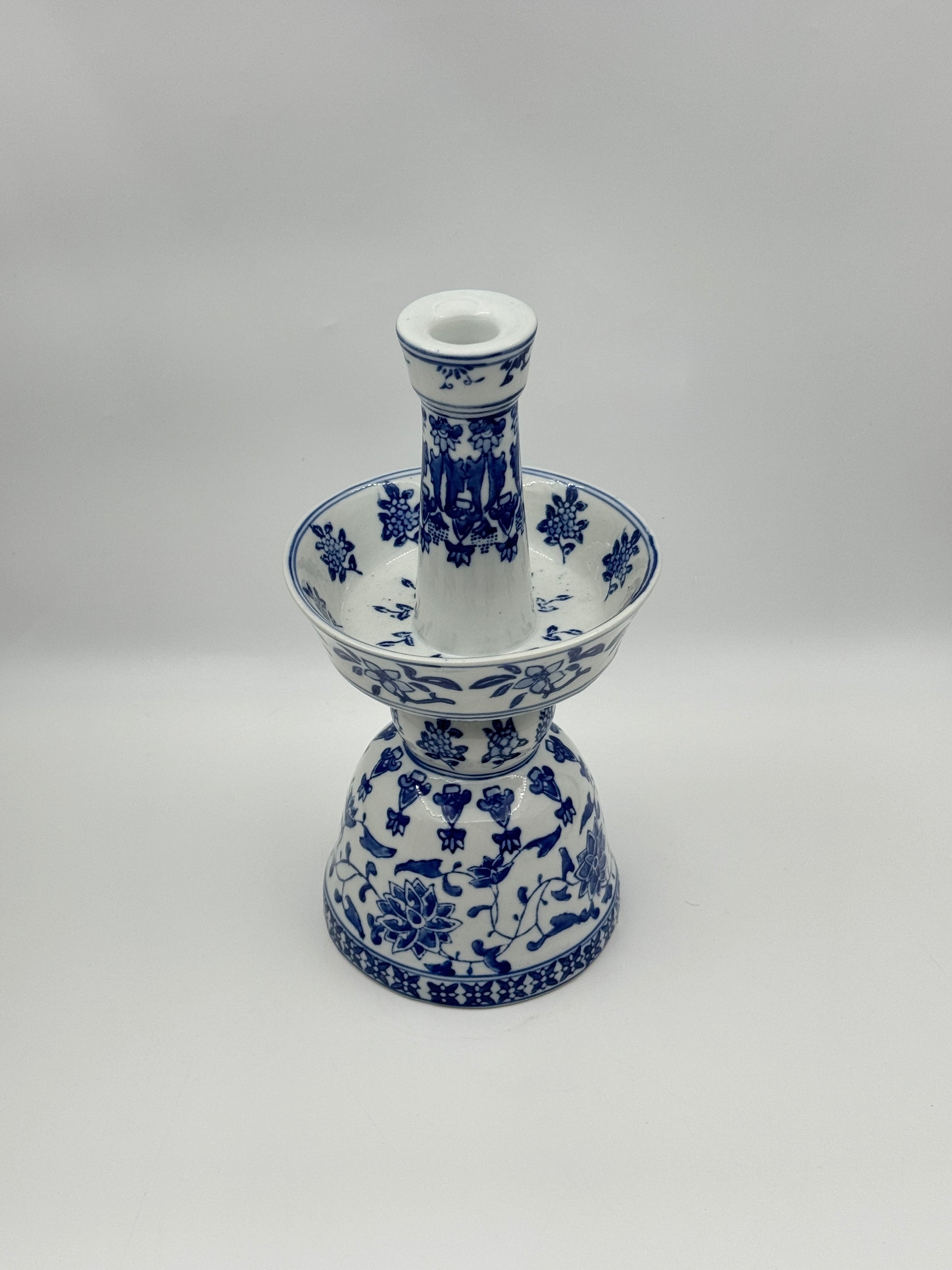 Chinese Blue and White Porcelain Candleholder – Floral Motif