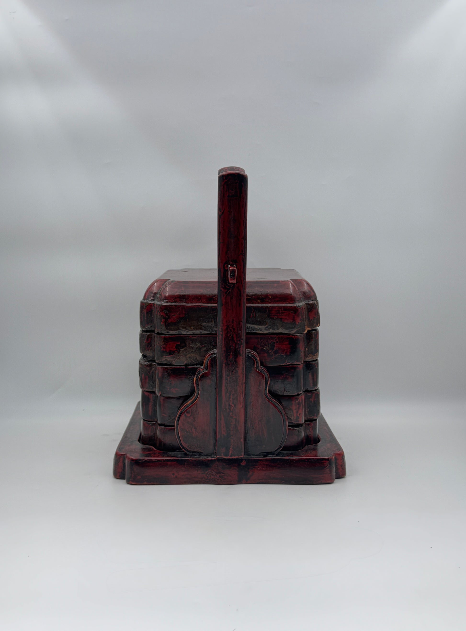 Chinese Red Lacquer Stacked Tea Box with Handle