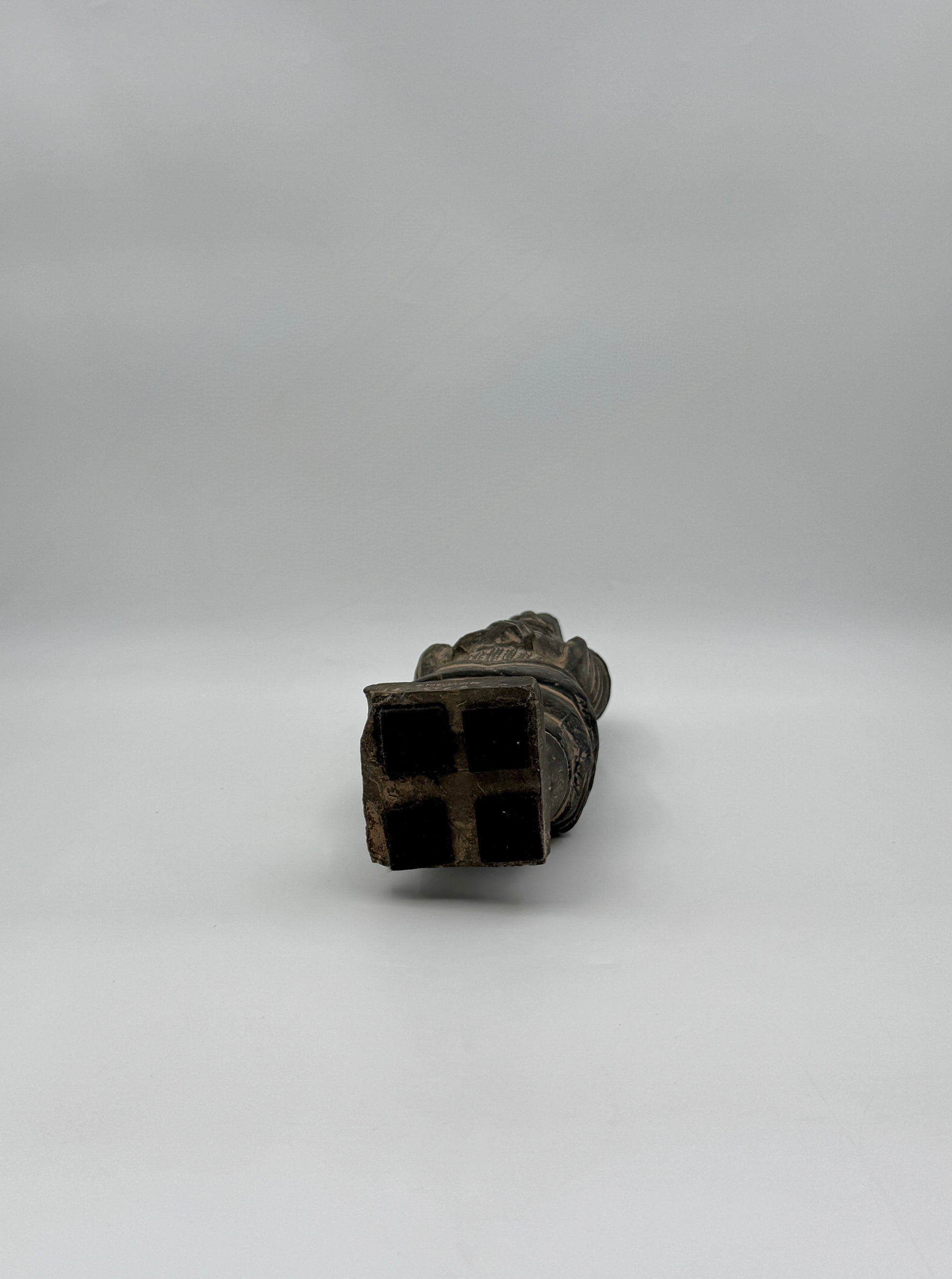 Detailed Chinese terracotta warrior replica inspired by the Xi’an army of Emperor Qin Shi Huang. Handcrafted with aged patina and characterful surface texture.