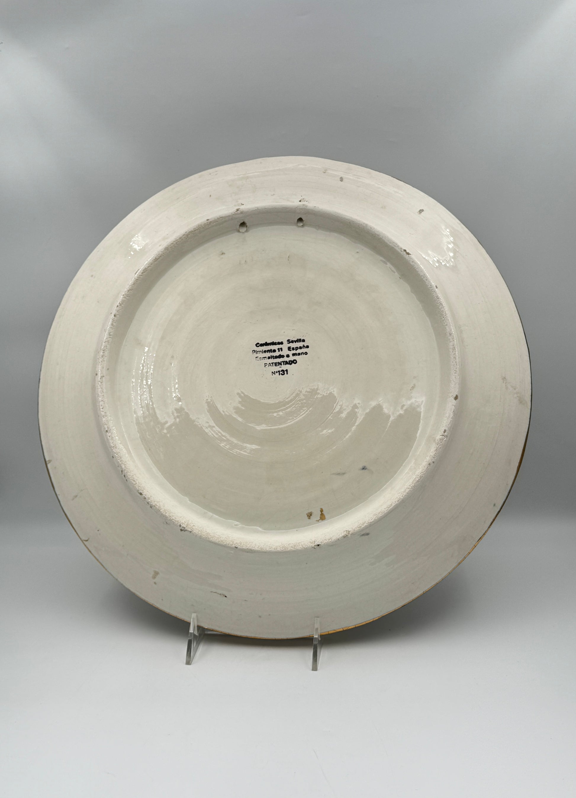 - Marked “Cerámicas Sevilla, Pimienta 11 España, Esmaltado a mano, PATENTADO, Nº 131”