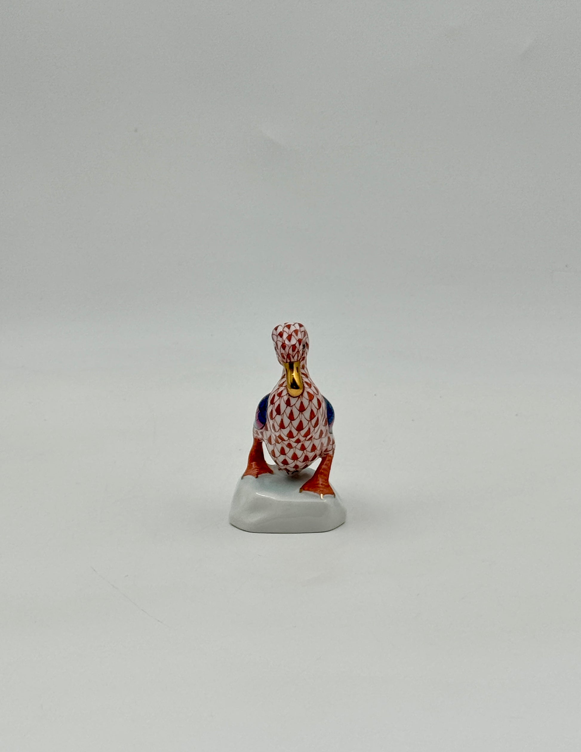 Herend Miniature Duck Figurine – Rust Fishnet Pattern with Multi-Color Feathers