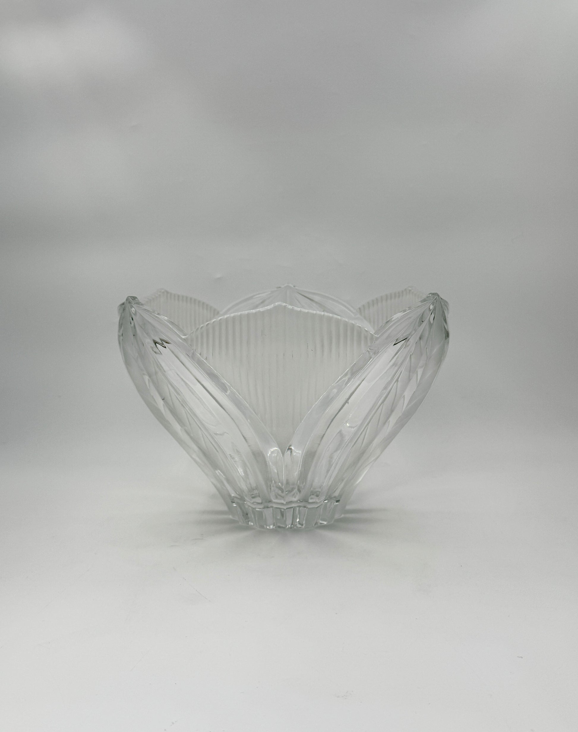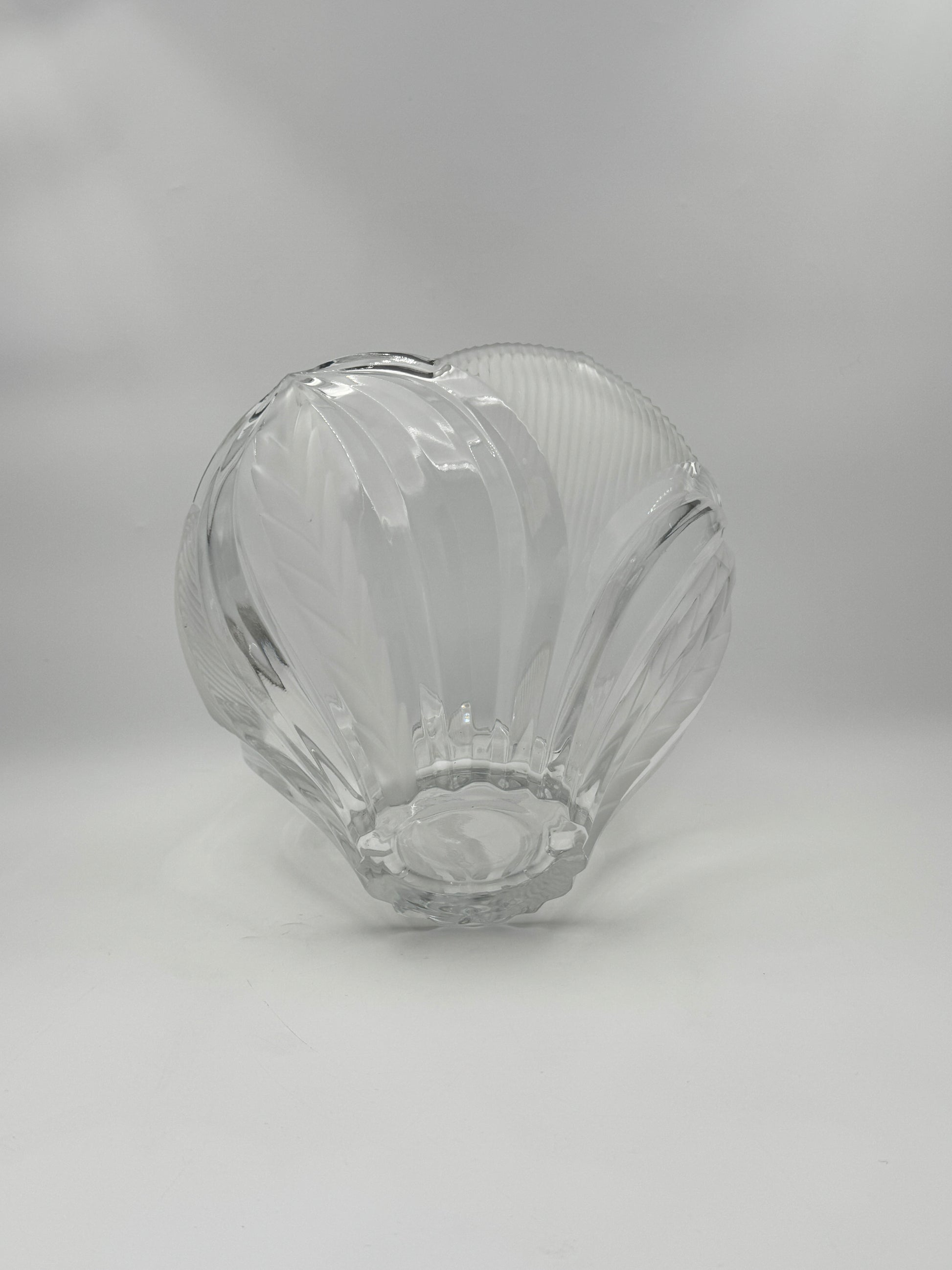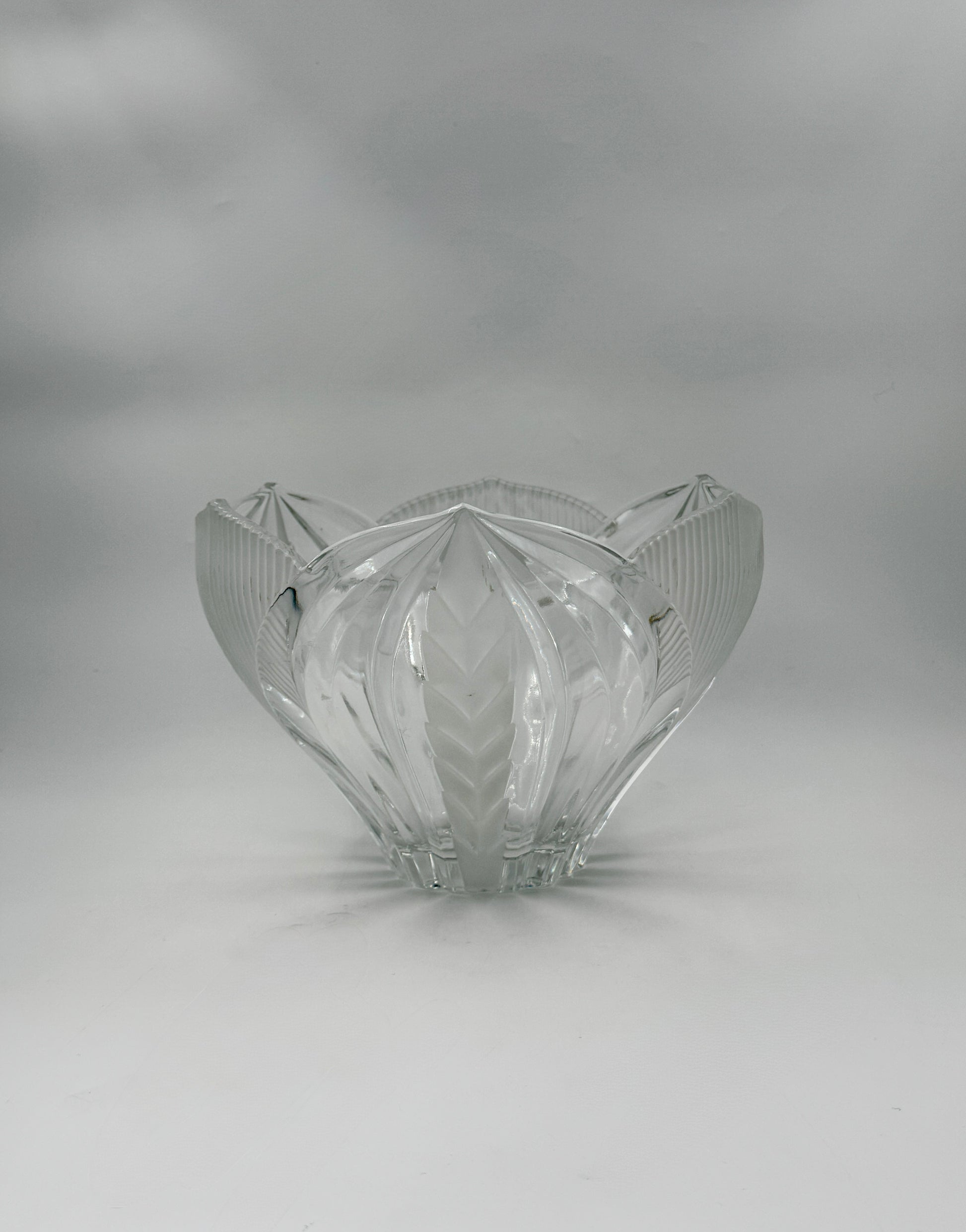 Elegant Orrefors crystal bowl featuring the Wheat pattern, with sculpted leaf-like panels and ribbed detailing. A timeless Scandinavian design perfect for display or serving.