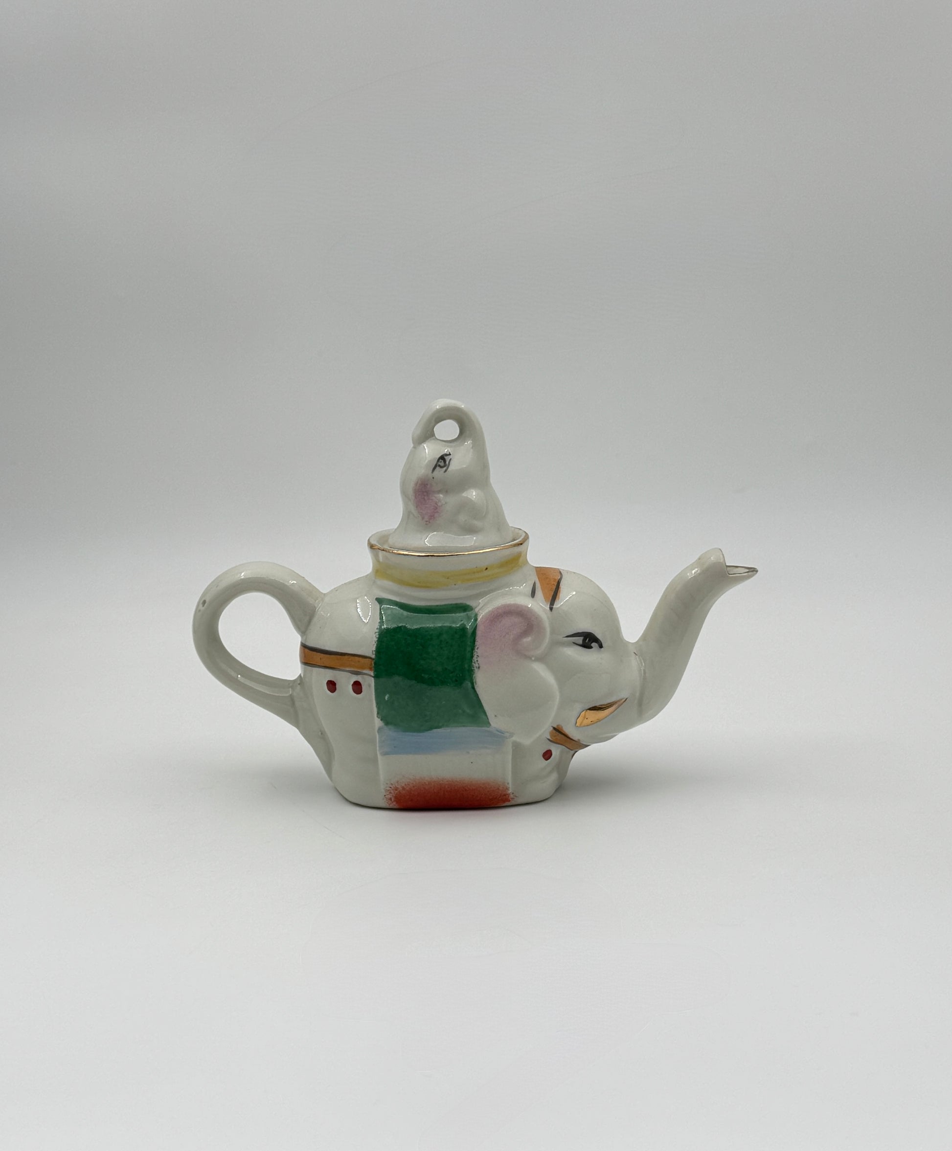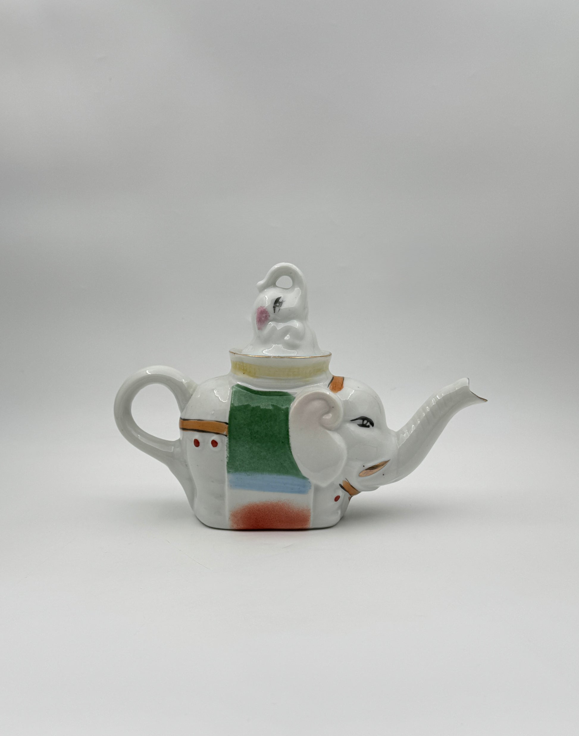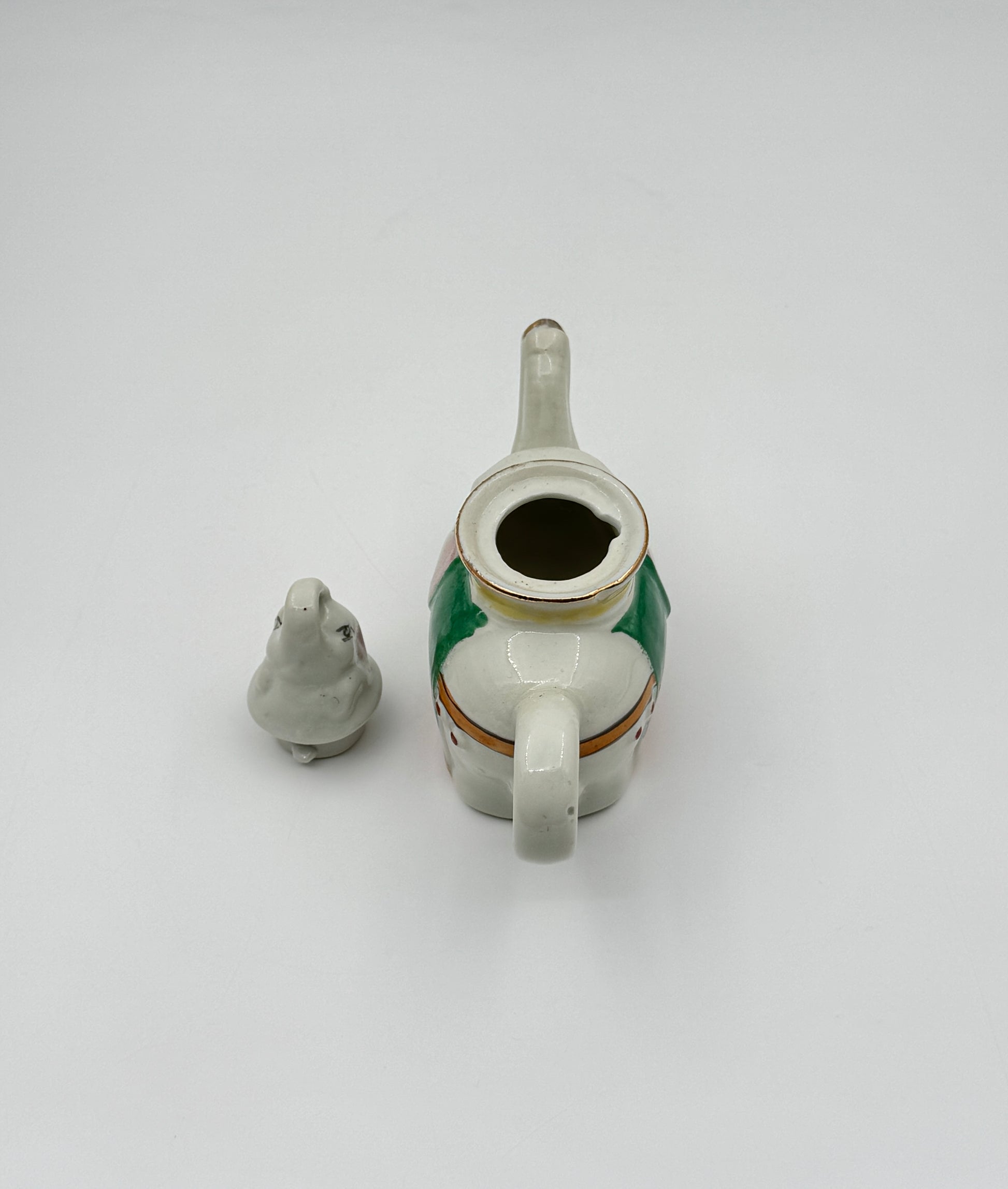 - Pair of porcelain teapots shaped as elephants