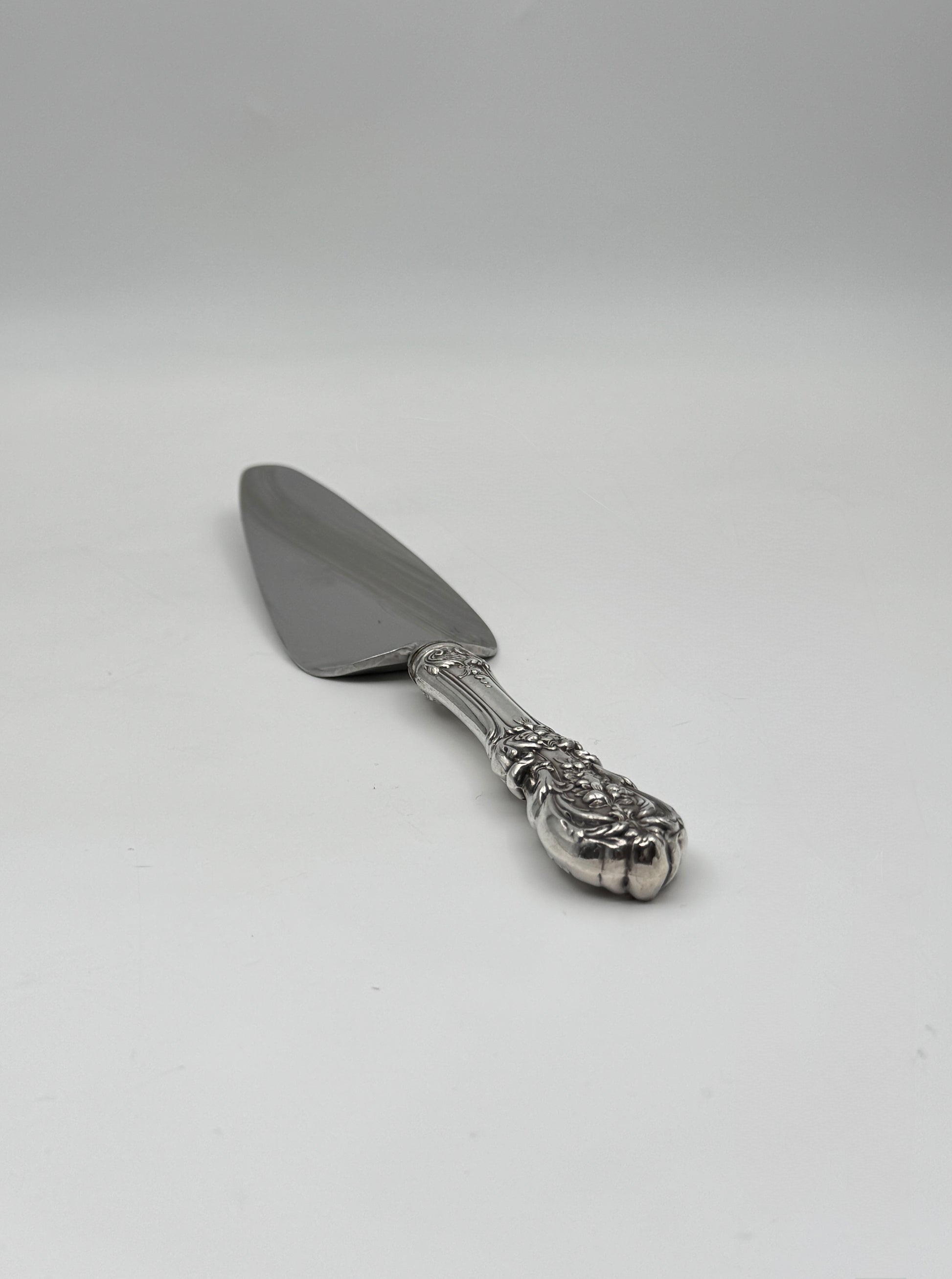 Elegant Reed & Barton Francis I cake slice with sterling silver handle and stainless blade.
