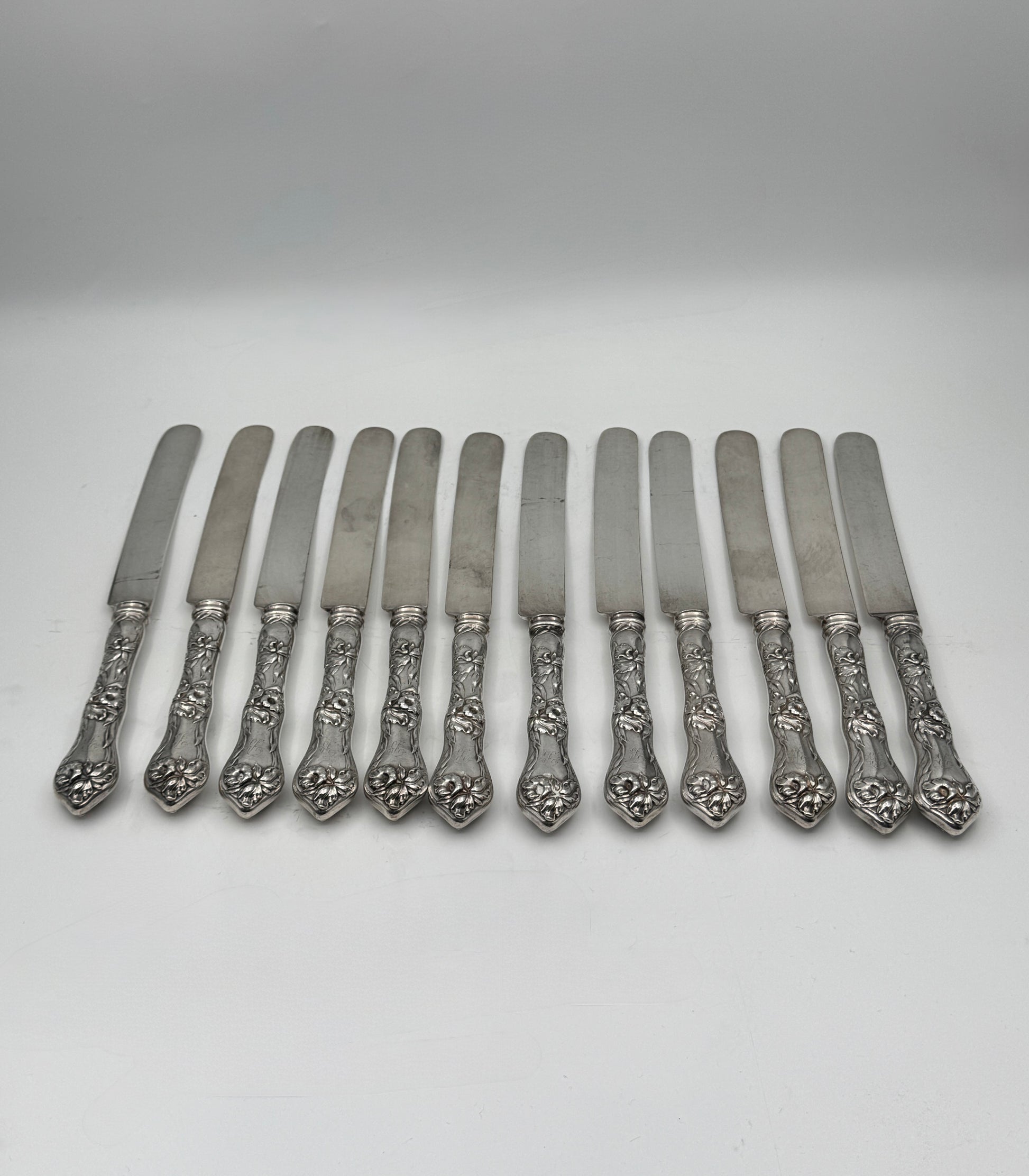 Set of 12 Sterling Handled French Blade Knives – Floral Pattern