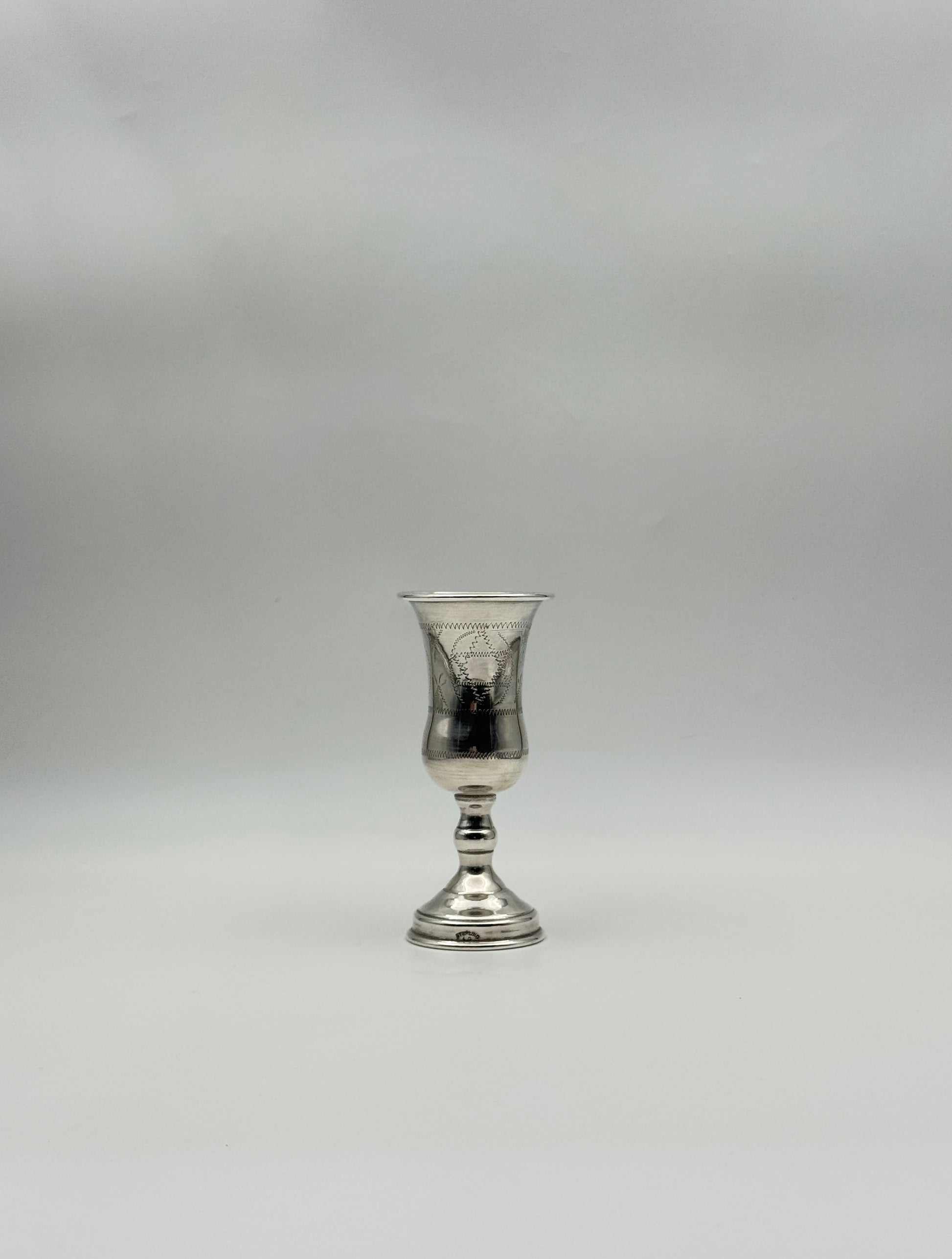 Sterling Silver Kiddush Cup – Etched Goblet – Marked Sterling