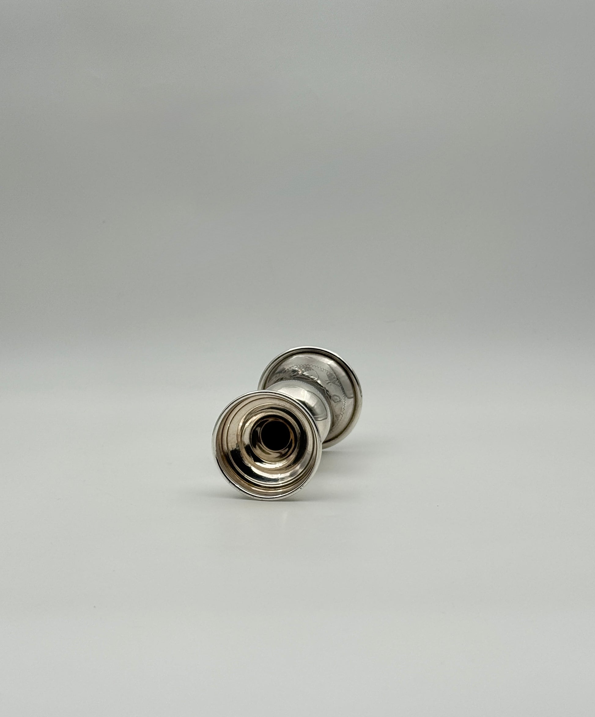 Elegant sterling silver Kiddush cup with a flared rim, etched floral motif, and turned stem, featuring a gold-washed interior.
