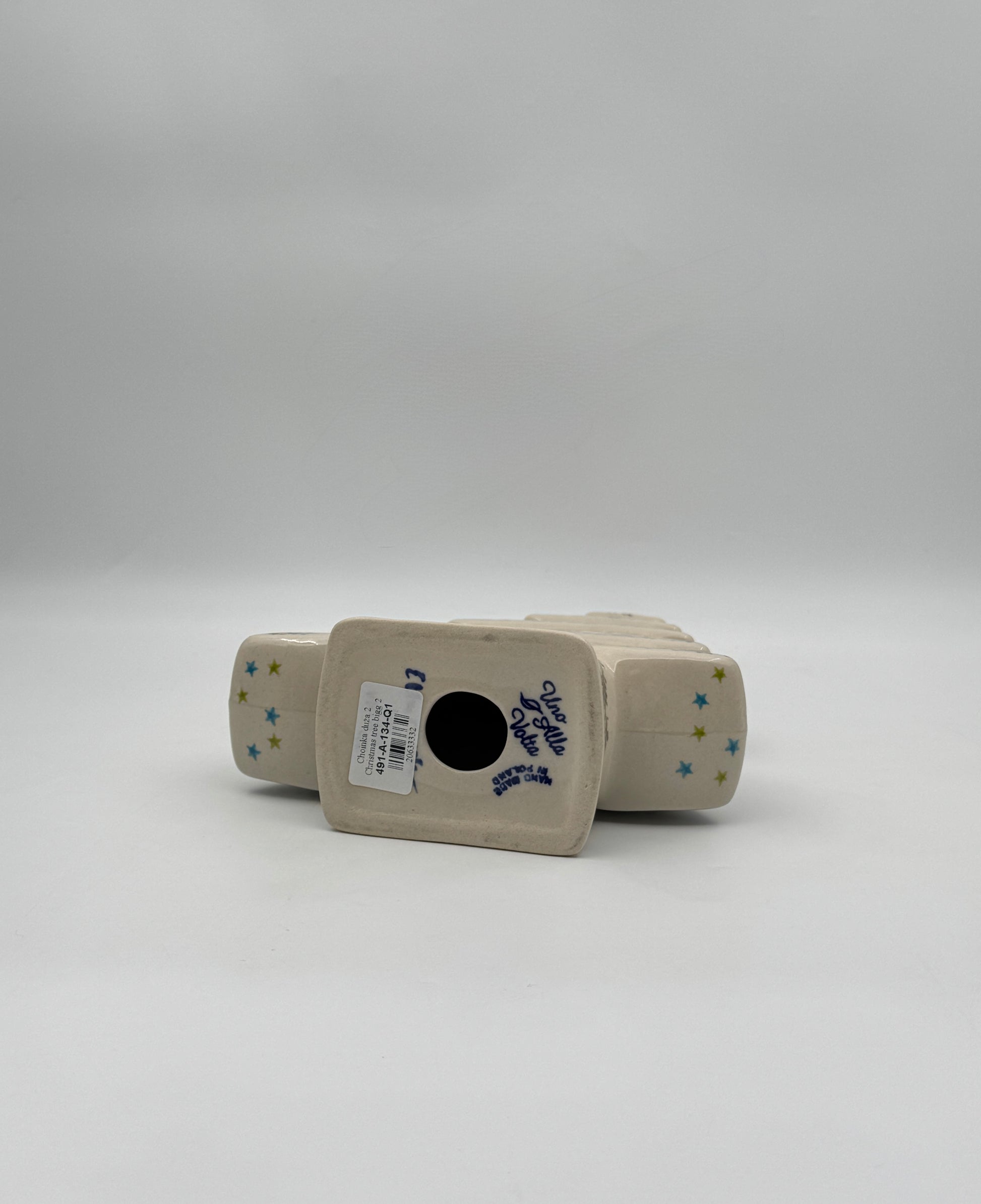 Festive hand-painted ceramic Christmas tree from Poland by Uno Alla Volta, featuring candy canes, garlands, and colorful stars in a traditional holiday motif.