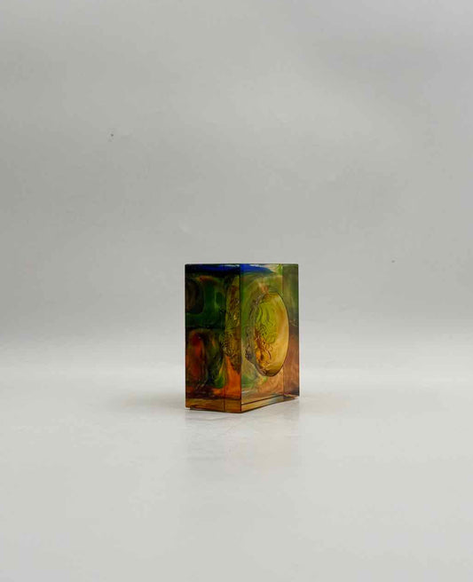 2008 Chinese Liuli Art Glass Paperweight Goldfish Peony Design